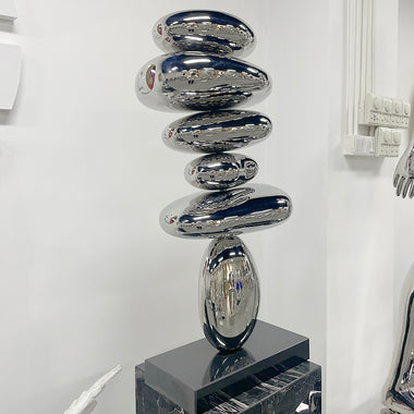 Stainless Steel Stacked Pebbles Sculpture for Interior Decoration