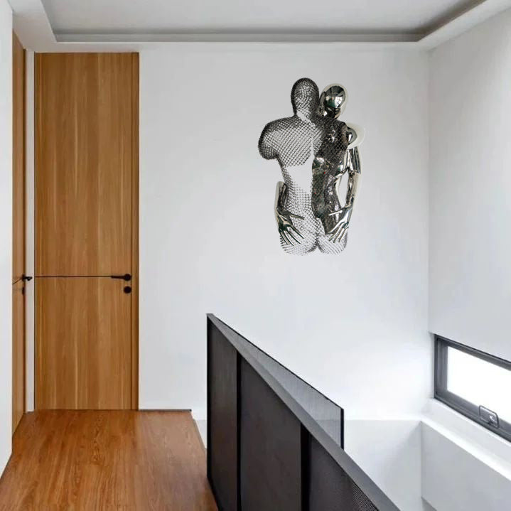 The Stainless Steel Embrace Sculpture is a stunning piece of contemporary art that beautifully captures the intimate act of an embrace. Standing at 98 cm tall, this sculpture is crafted from high-quality stainless steel, giving it a sleek and modern appearance.