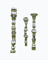 This striking 3.6-meter-high sculpture is crafted from high-quality stainless steel, designed to evoke the natural elegance of icicles. Its towering form features a series of irregular, organically shaped segments that are stacked vertically, each reflecting light in a unique way due to the polished surface. The sculpture’s mirrored finish creates dynamic interactions with its environment, capturing and reflecting the surrounding landscape and architecture.