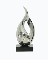 This stainless steel sculpture is a captivating example of modern abstract art designed for high-end interior spaces. The smooth, flowing form evokes a sense of movement and harmony, resembling a flame or a droplet mid-curve—symbolizing energy and unity.