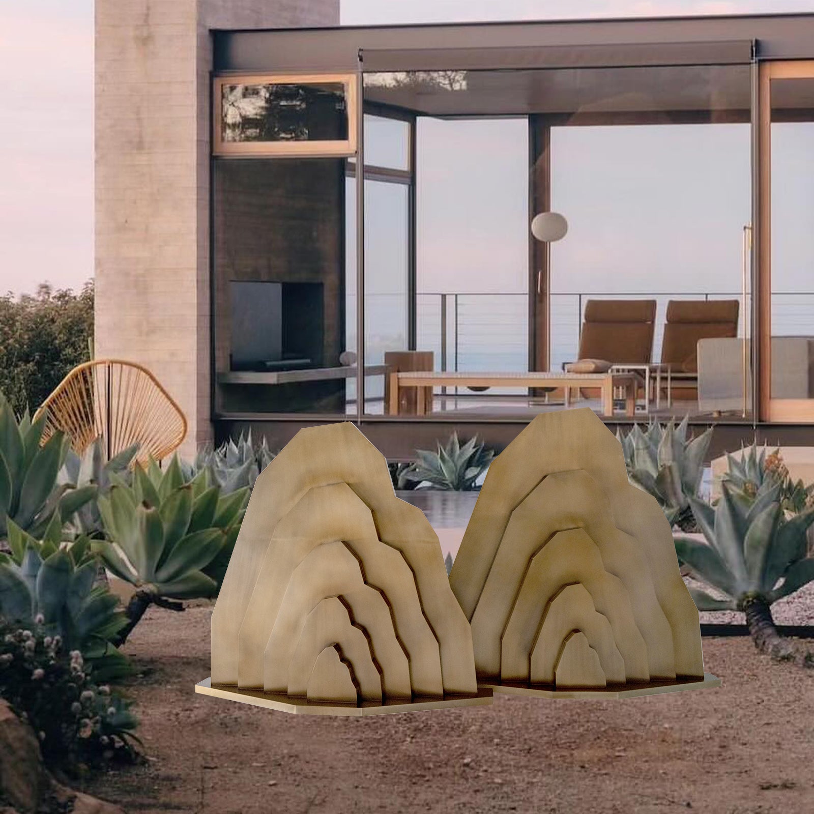 The Stainless Steel Mountain Sculpture is an impressive and monumental piece designed to enhance outdoor landscapes with its striking and modern aesthetic. This sculpture features an abstract representation of mountain peaks, skillfully crafted from high-quality stainless steel.