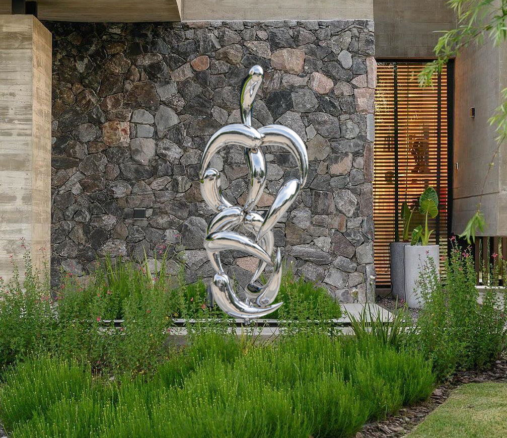 🔹 Premium Stainless Steel: Crafted from high-quality stainless steel, this sculpture promises durability and resistance to the elements. Its polished finish enhances its reflective properties, creating a mesmerizing visual effect as it catches and reflects light.