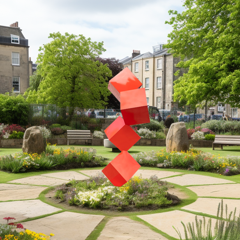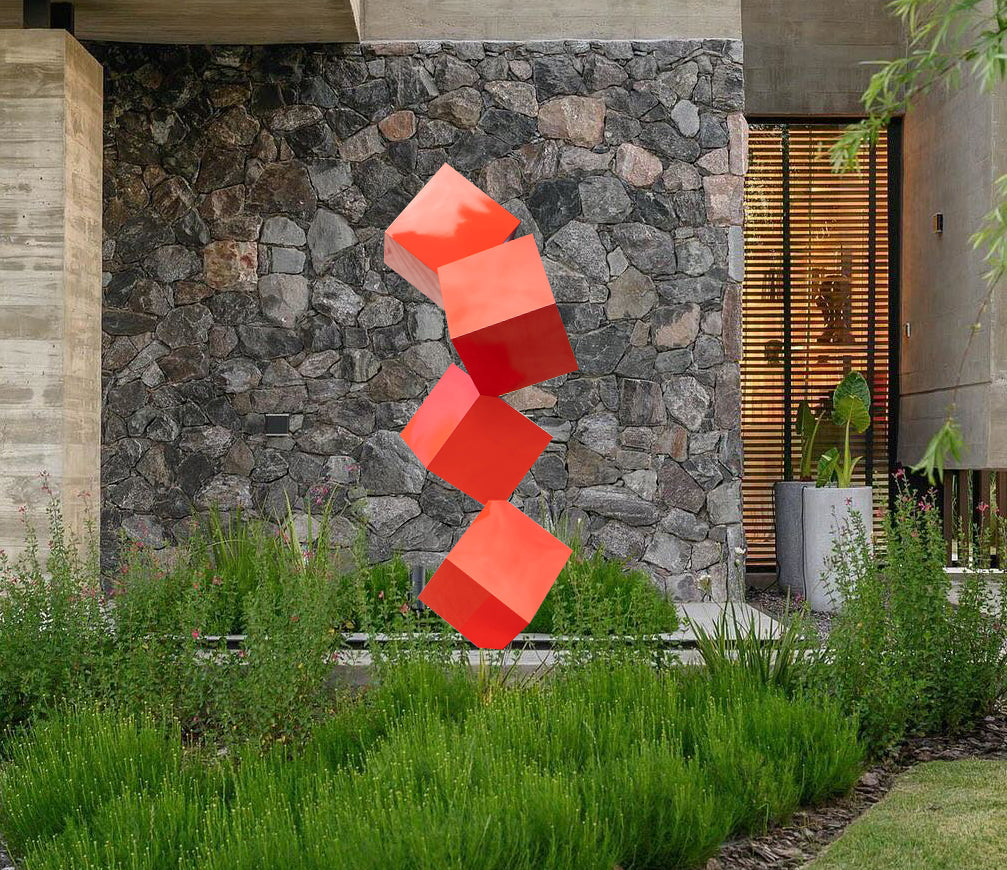 🔹 Dynamic Cube Design: The sculpture features a series of stacked and rotated cubes that create a sense of movement and balance. This geometric design is both bold and sophisticated, making it a standout piece in any outdoor setting.
