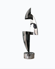The sculpture depicted is an elegant and contemporary stainless steel piece designed for interior decoration. Standing at a height of 79 centimeters, this abstract sculpture showcases a sophisticated and modern aesthetic, making it a perfect addition to any indoor space.